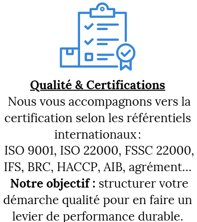 - Vous aider à mettre en place un système certifiable.